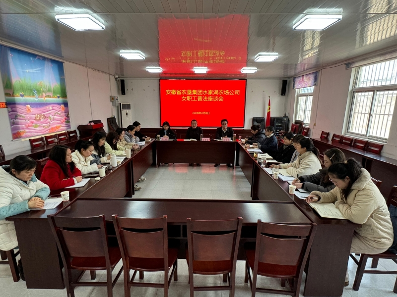 3月6日,水家湖农场举办“保障合法权益共促和谐发展”庆“三八”座谈会。与会人员进行了集体学习,相关负责人解读《妇女权益保障法》,结合农场实际,从法律保障、职业发展、特殊关爱等方面作出说明,为女职工维权筑牢法治基础。(水雯)