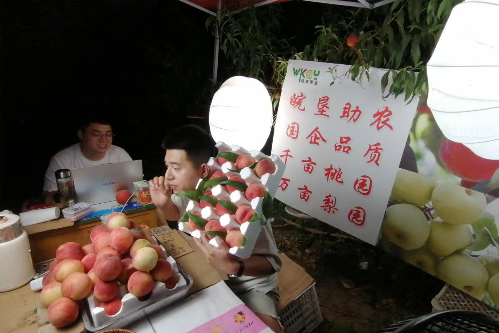 在直播间,主播一边介绍着苏翠一号梨与水蜜桃的生长环境、口感,一边与网友们聊天互动,带动下单。短短几日,该直播间销售苏翠一号梨日均3000单,共计约7.5万斤;销售水蜜桃日均4000单,共计约9万斤。