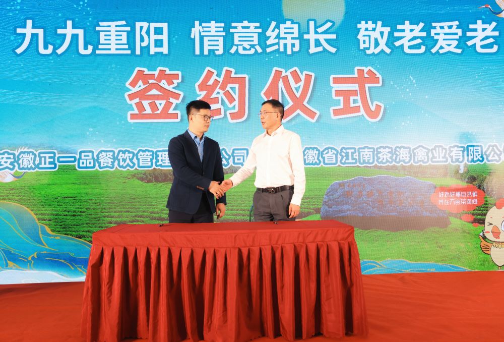 图:发布会上,多家客商和江南茶海禽业公司现场签约。