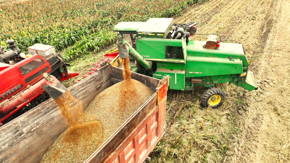 高粱垂红穗,又到丰收时。10月9日,位于龙亢农场公司农业二场的高粱种植基地,收割机来回穿梭,田间地头呈现出一派繁忙热闹的丰收景象。