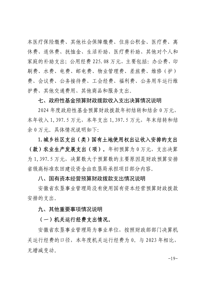 安徽农垦集团:下载链接:安徽省农垦事业管理局2024年度部门决算.pdf