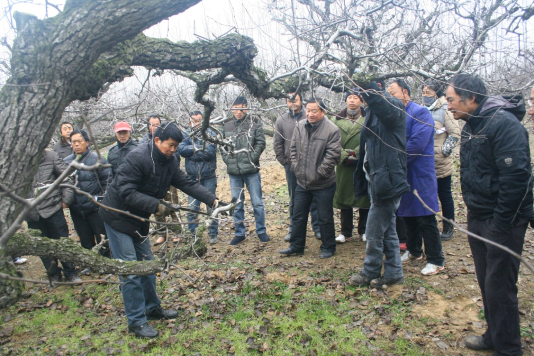 陈加红向果农们开展砀山酥梨冬季修剪技术培训指导(郭茜 摄)