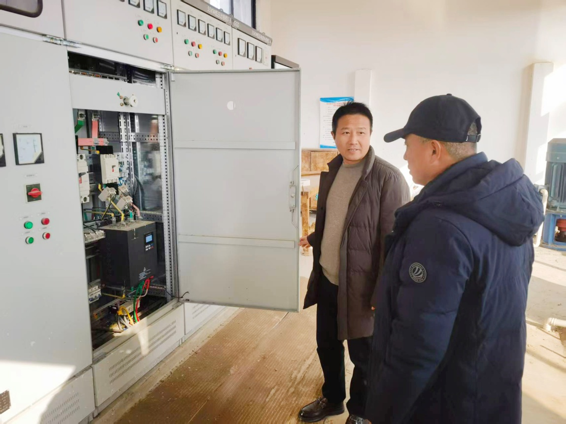 焦岗湖农场安委会成员在农业生产二队排灌站检查配电箱 (鲍玉鹏 摄)