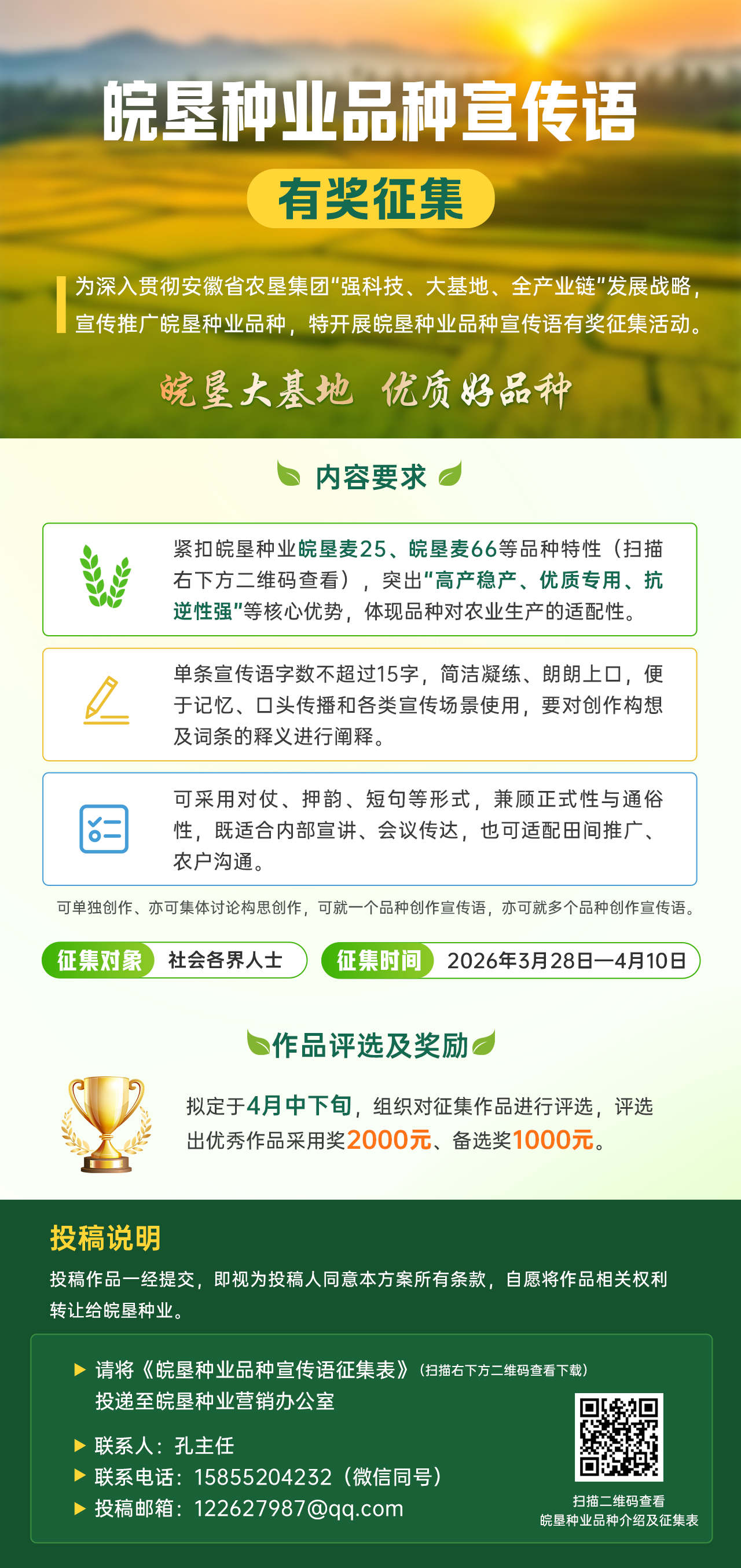 皖垦种业有奖征集品种宣传语